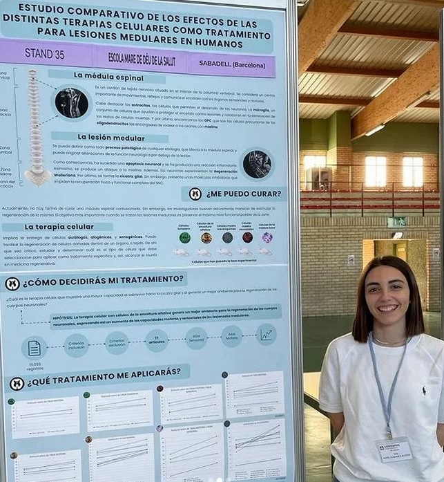 L'Estel Gubianes, alumna de 2n de batxillerat, ha guanyat el 1r Premi en el Certamen Nacional Don Bosco. Títol del Projecte: ESTUDI COMPARATIU DELS EFECTES DE LES DIFERENTS TERÀPIES CEL·LULARS COM A TRACTAMENT PER A LESIONS MEDUL·LARS EN HUMANS Autora: Estel Gubianes Alcedo Tutor: Sergi Bonet Martínez