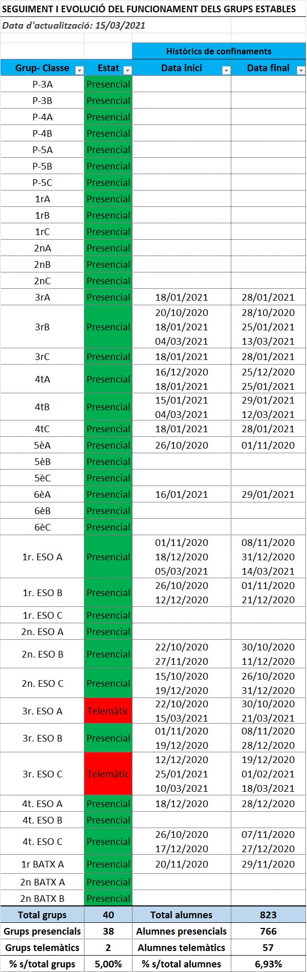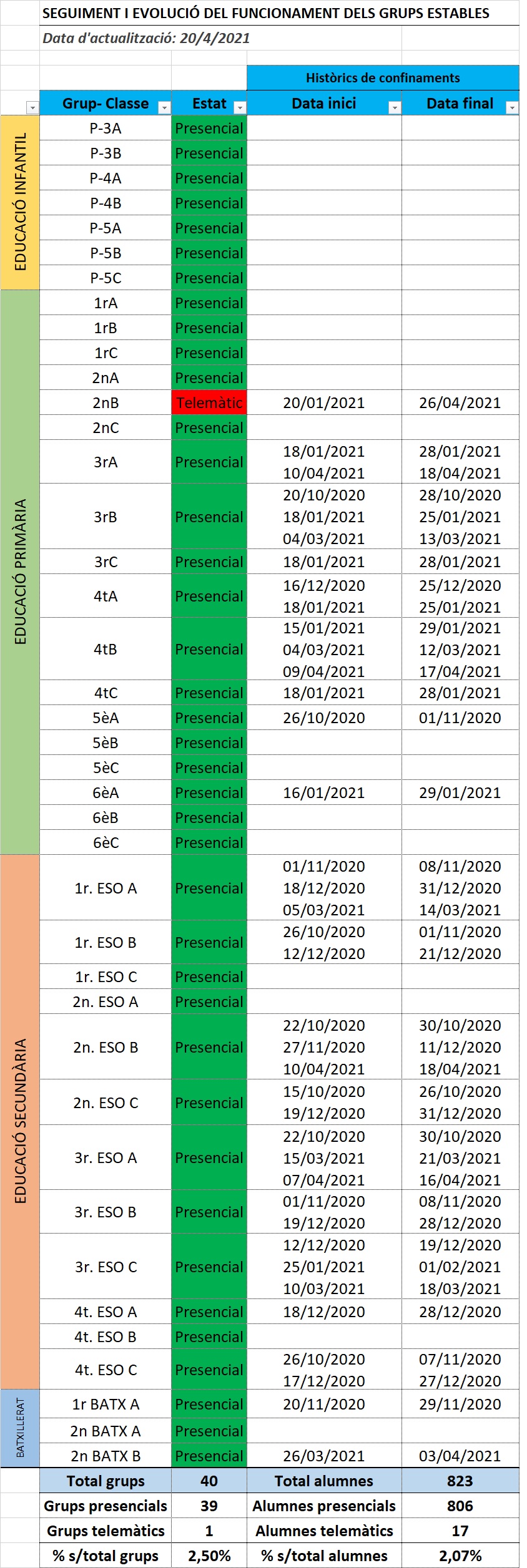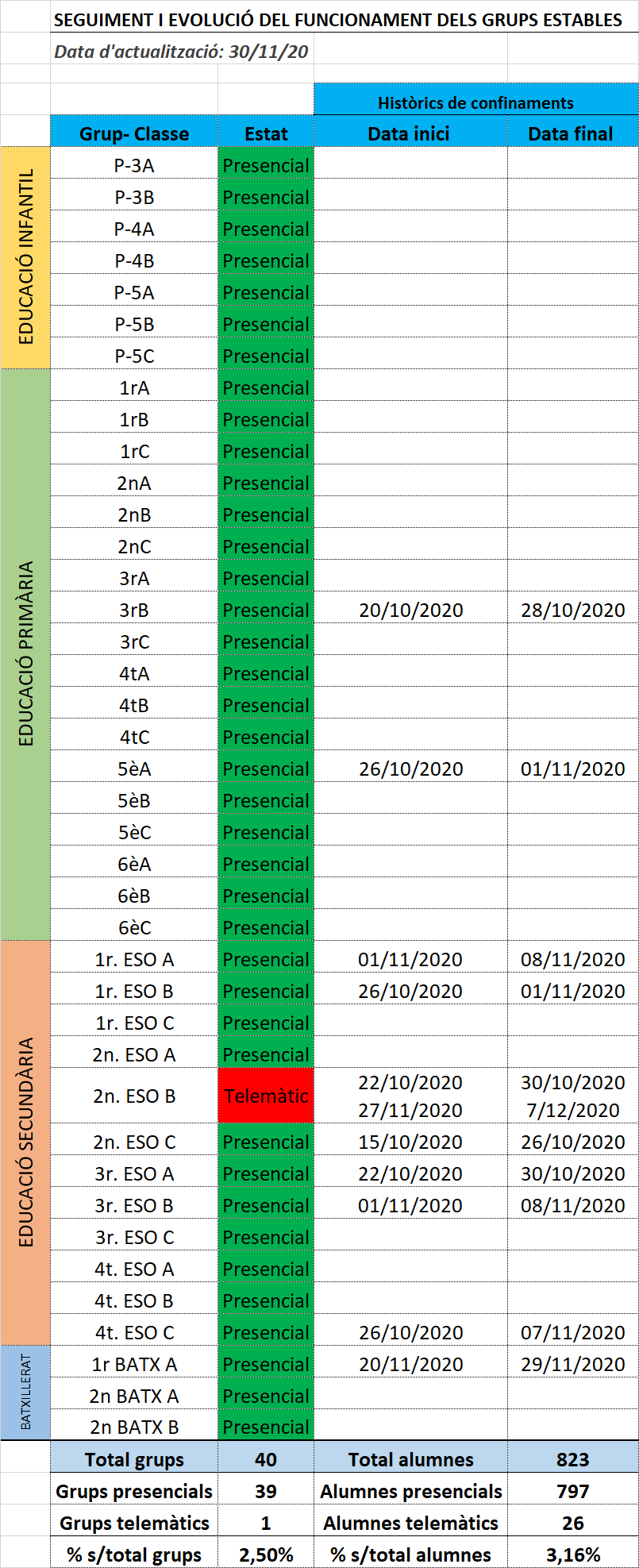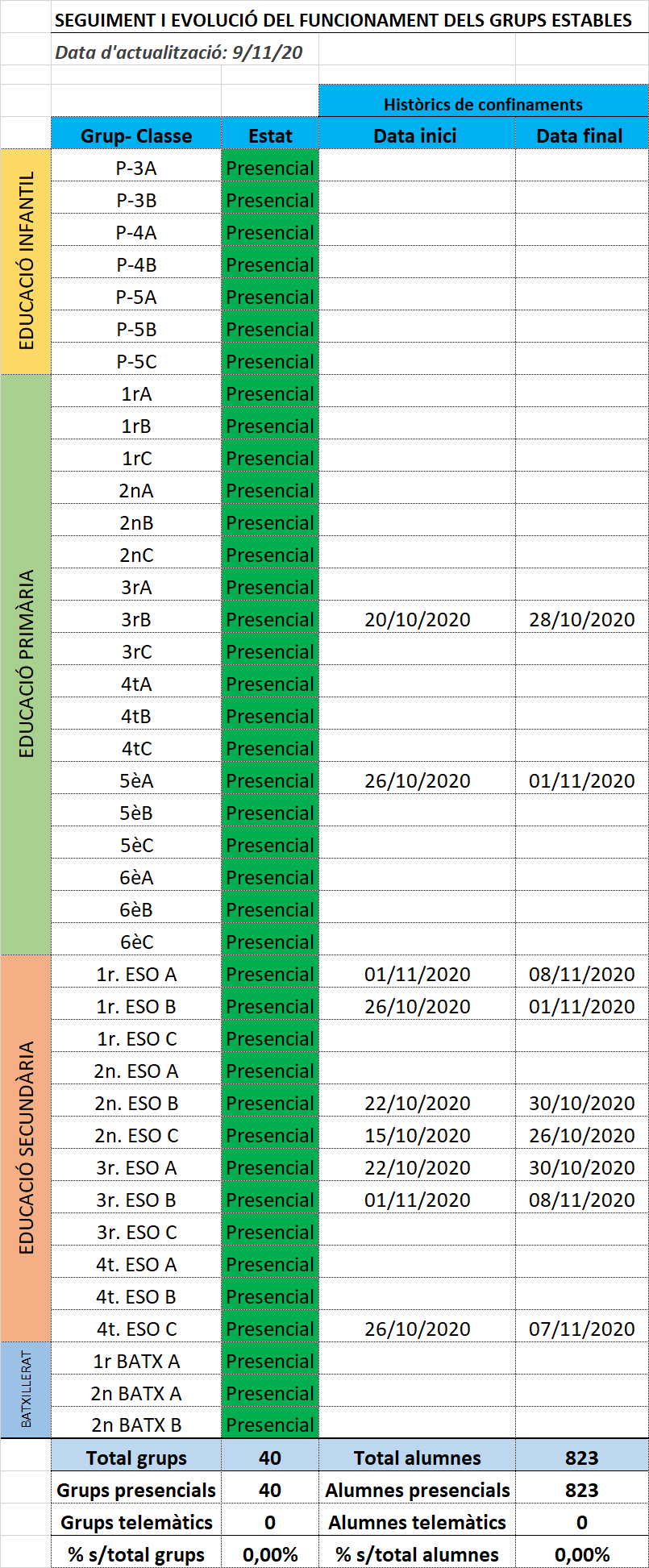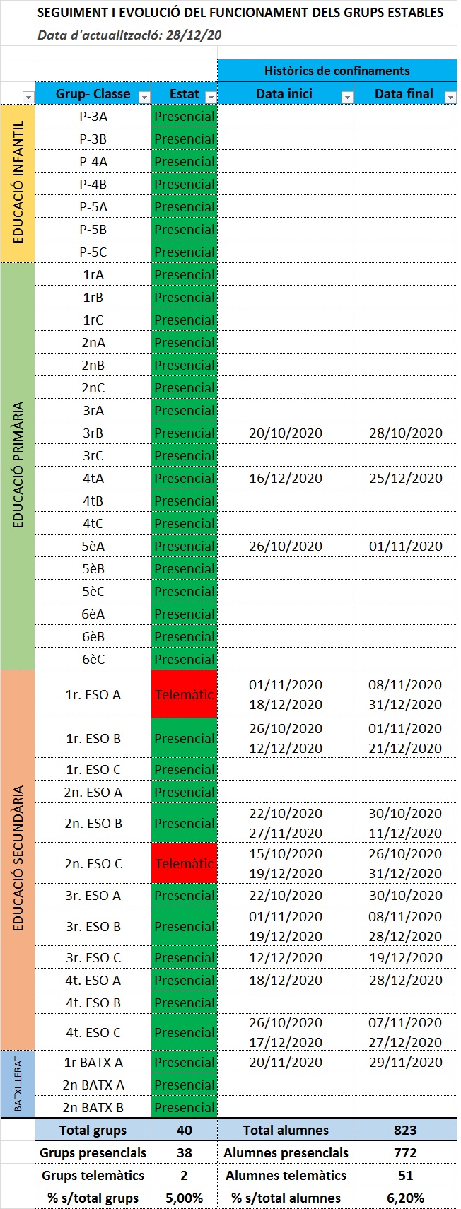 Dades actualitzades a la nostra escola: