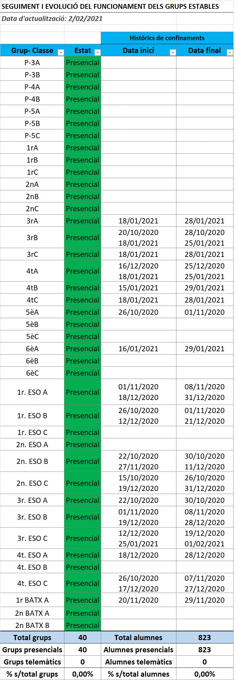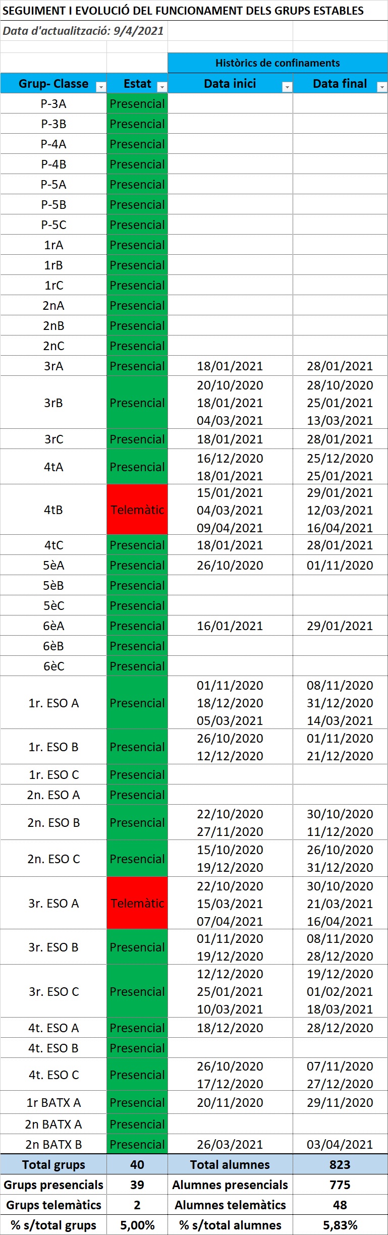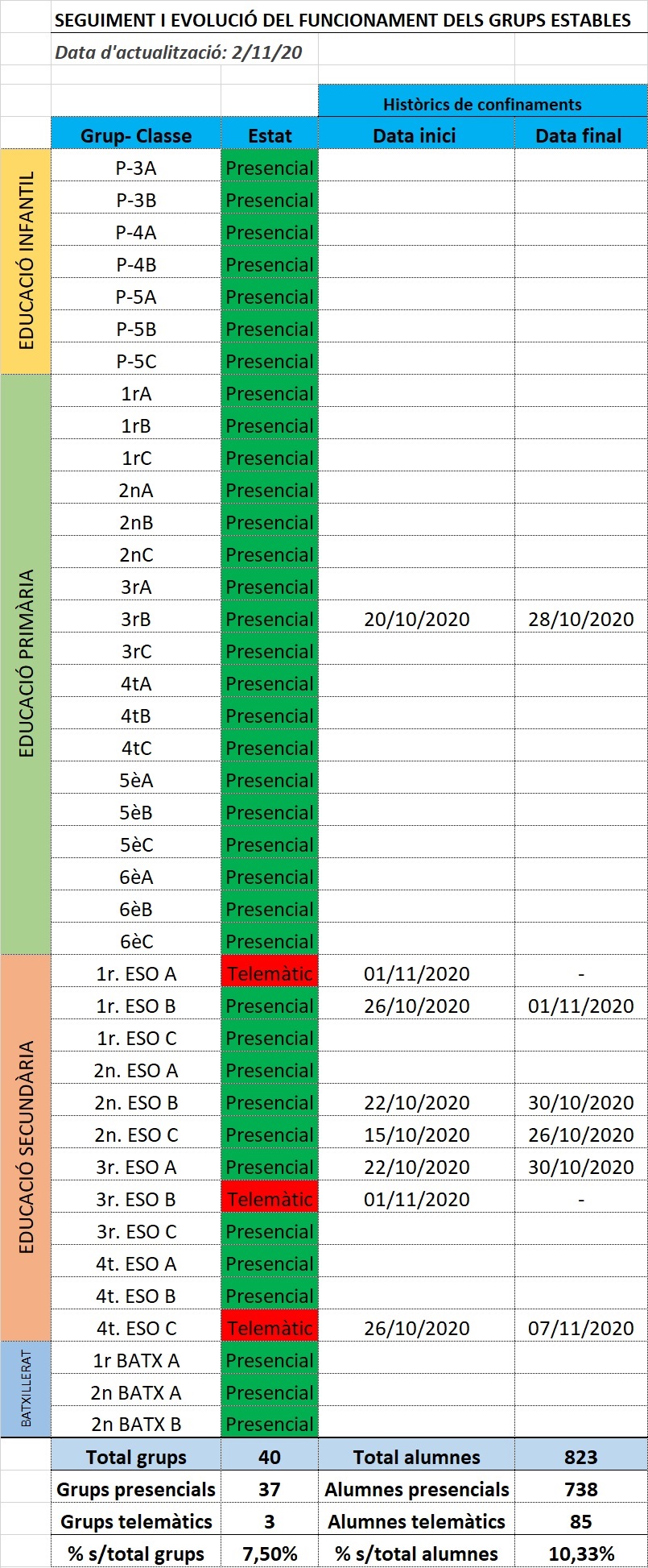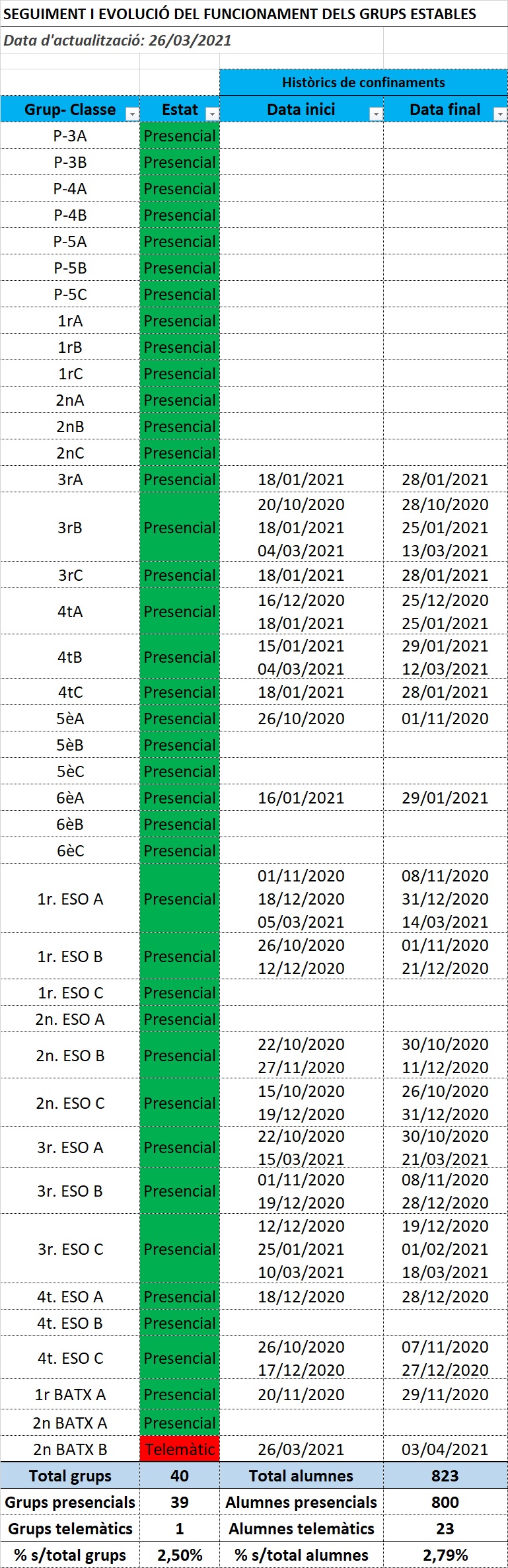 Dades actualitzades a la nostra escola: