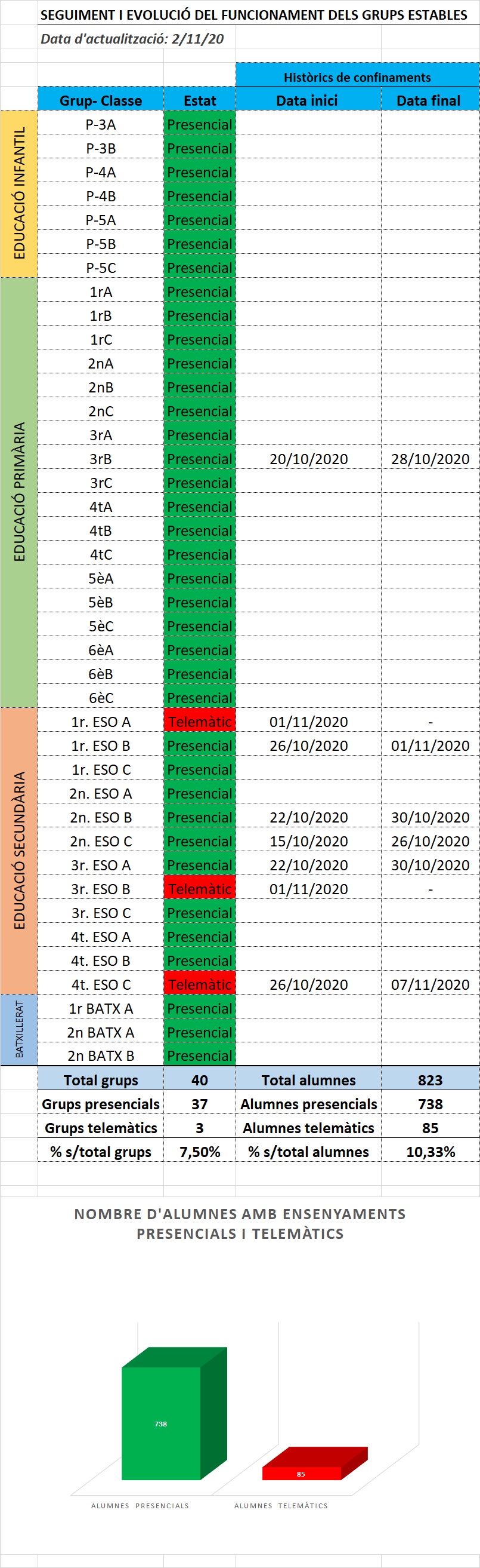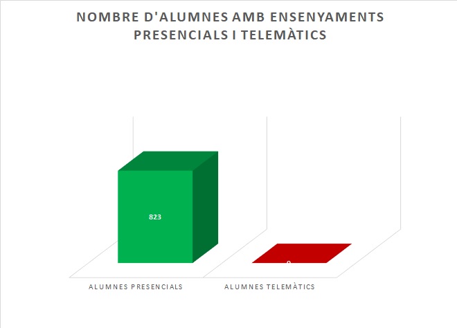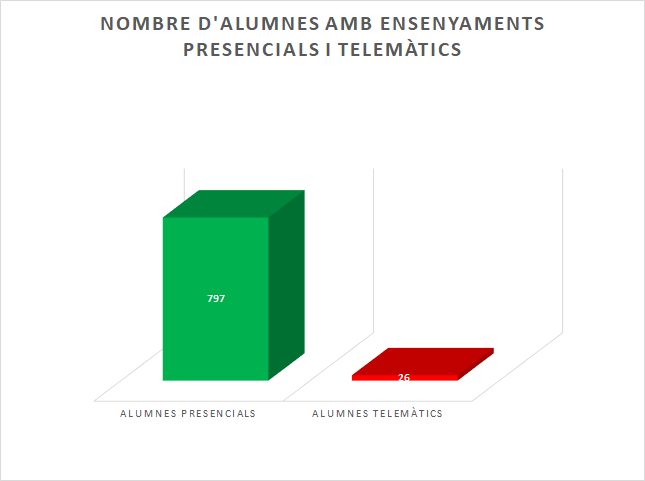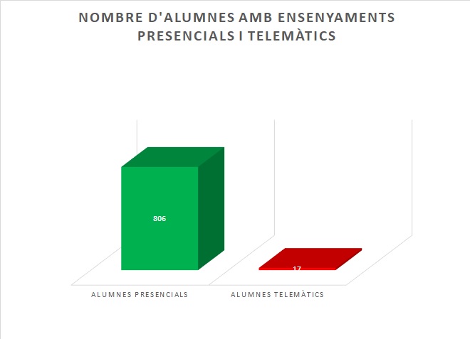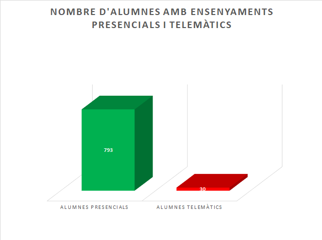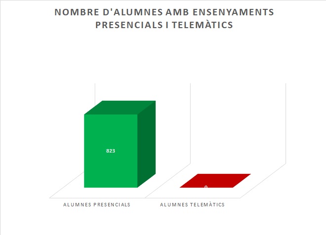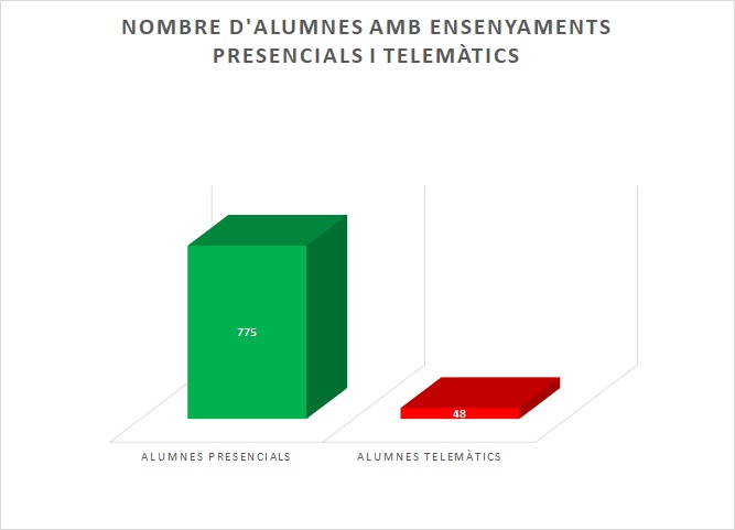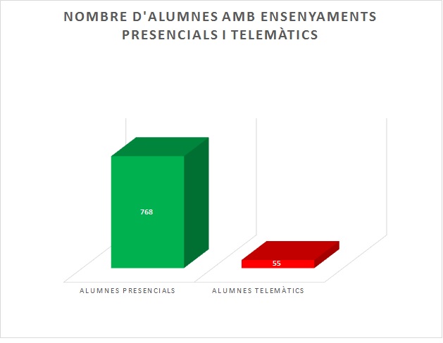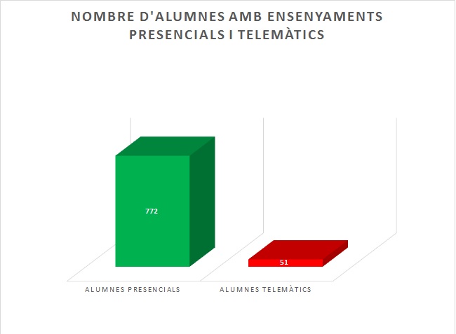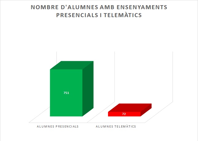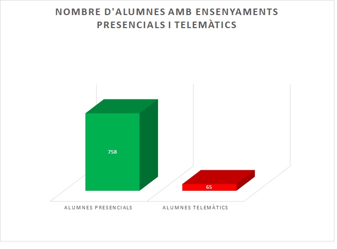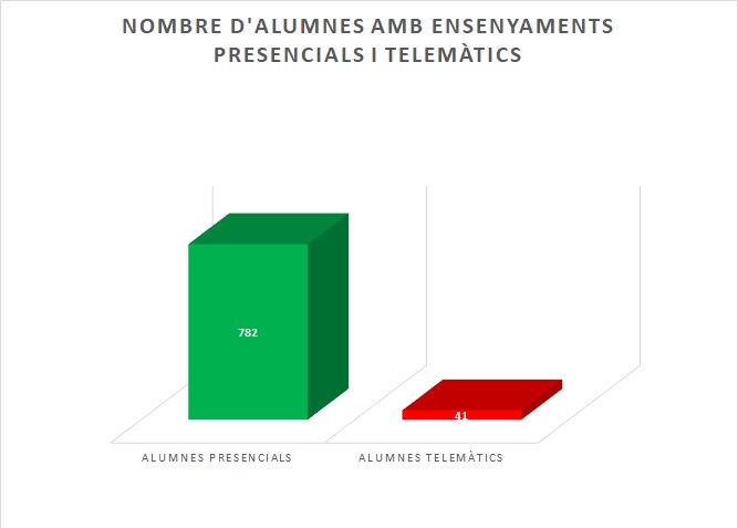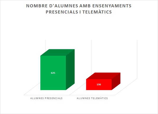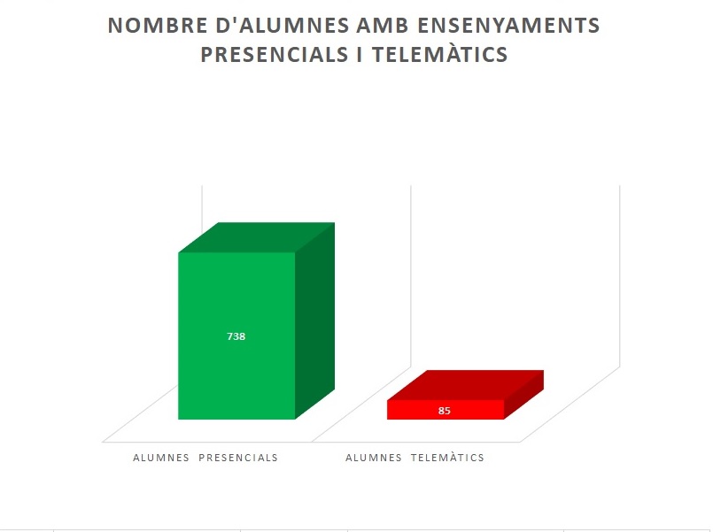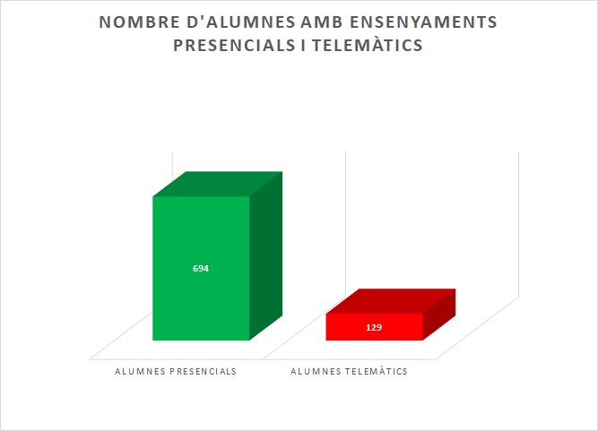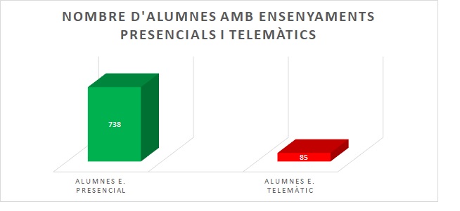 Gràficament es mostren els alumnes que estan estudiant de forma presencial i els alumnes que estan estudiant de forma telemàtica: